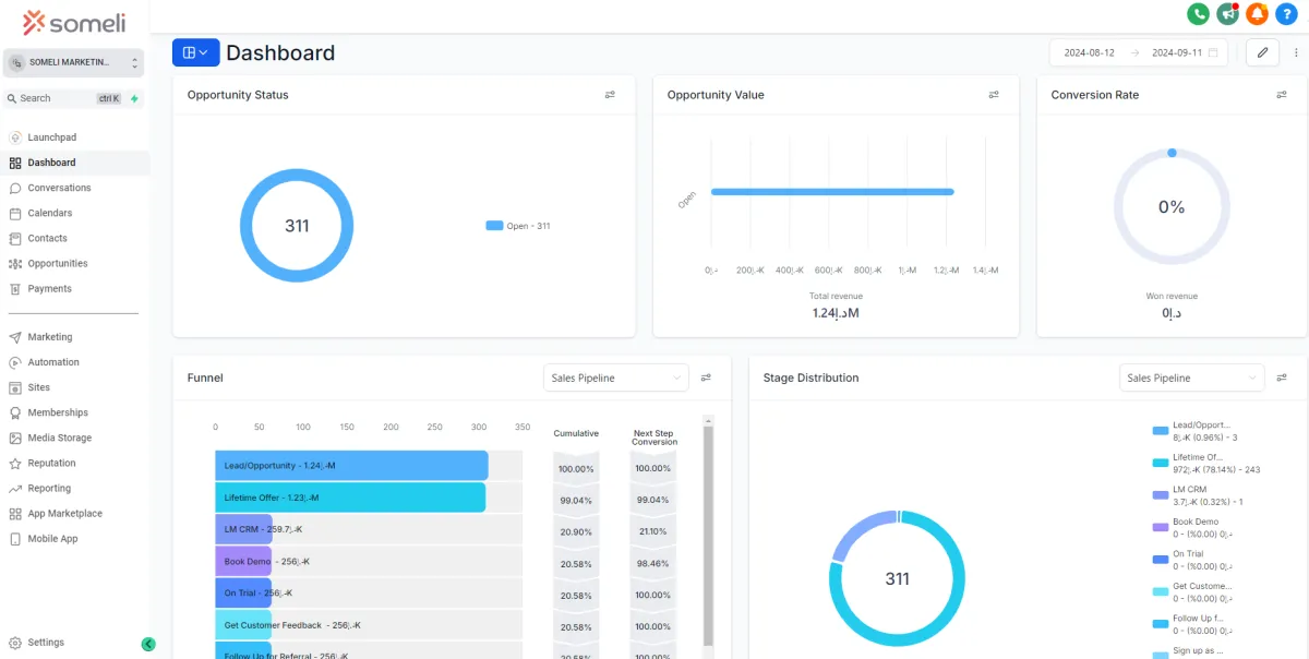 This system includes: CRM, Website builder & Landing pages, Email marketing, Leads/Opportunities dashboard, WhatsApp marketing, Google reviews, Ads Management and much more. This comprehensive system gives you all the tools you need to manage your business.