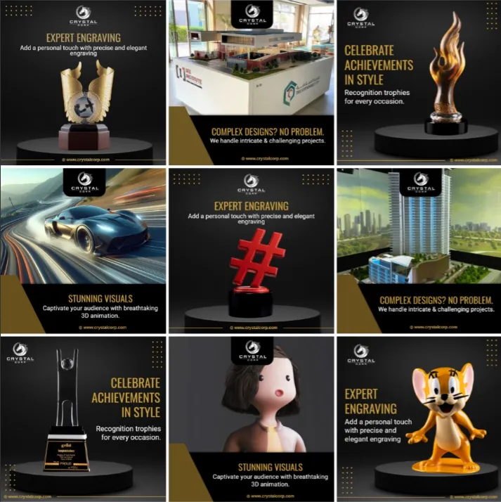 Crystal Corp, a Dubai-based innovator in 3D printing and architectural modeling, leveraged Someli AI to streamline its social media marketing. Through automated content creation and scheduling, Crystal Corp was able to consistently showcase its cutting-edge projects, from intricate architectural models to eye-catching trophies.